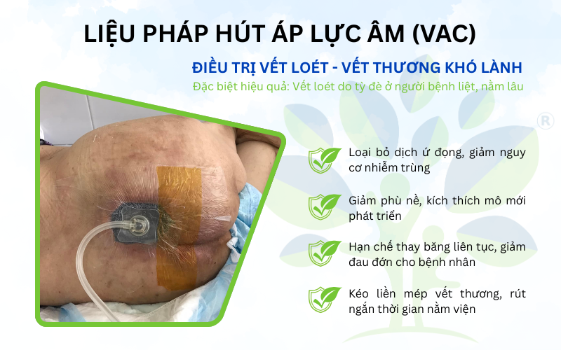 Ứng dụng VAC trong điều trị loét mãn tính – Giải pháp của y học hiện đại Trong những năm gần đây, liệu pháp hút áp lực âm (VAC – Vacuum Assisted Closure) đã trở thành một trong những bước tiến quan trọng của y học hiện đại trong điều trị vết loét mạn tính. Bằng việc tác động cơ học có kiểm soát lên bề mặt vết thương, VAC giúp thúc đẩy quá trình lành thương nhanh hơn, hạn chế biến chứng và giảm thời gian nằm viện.